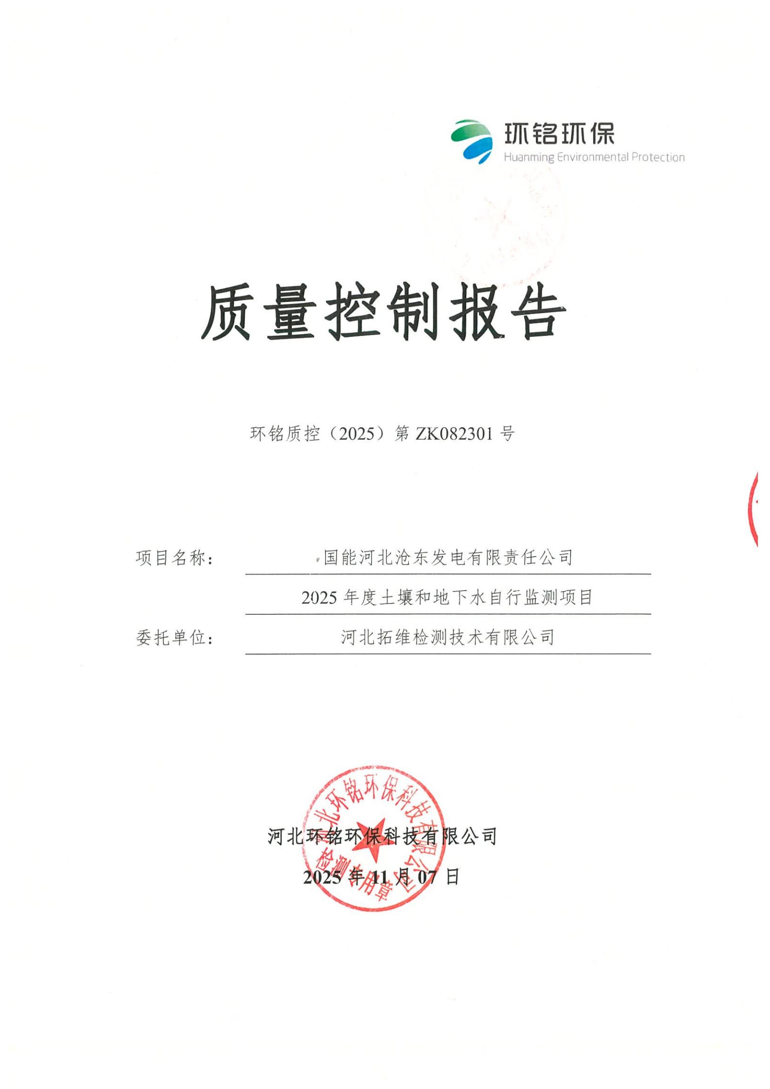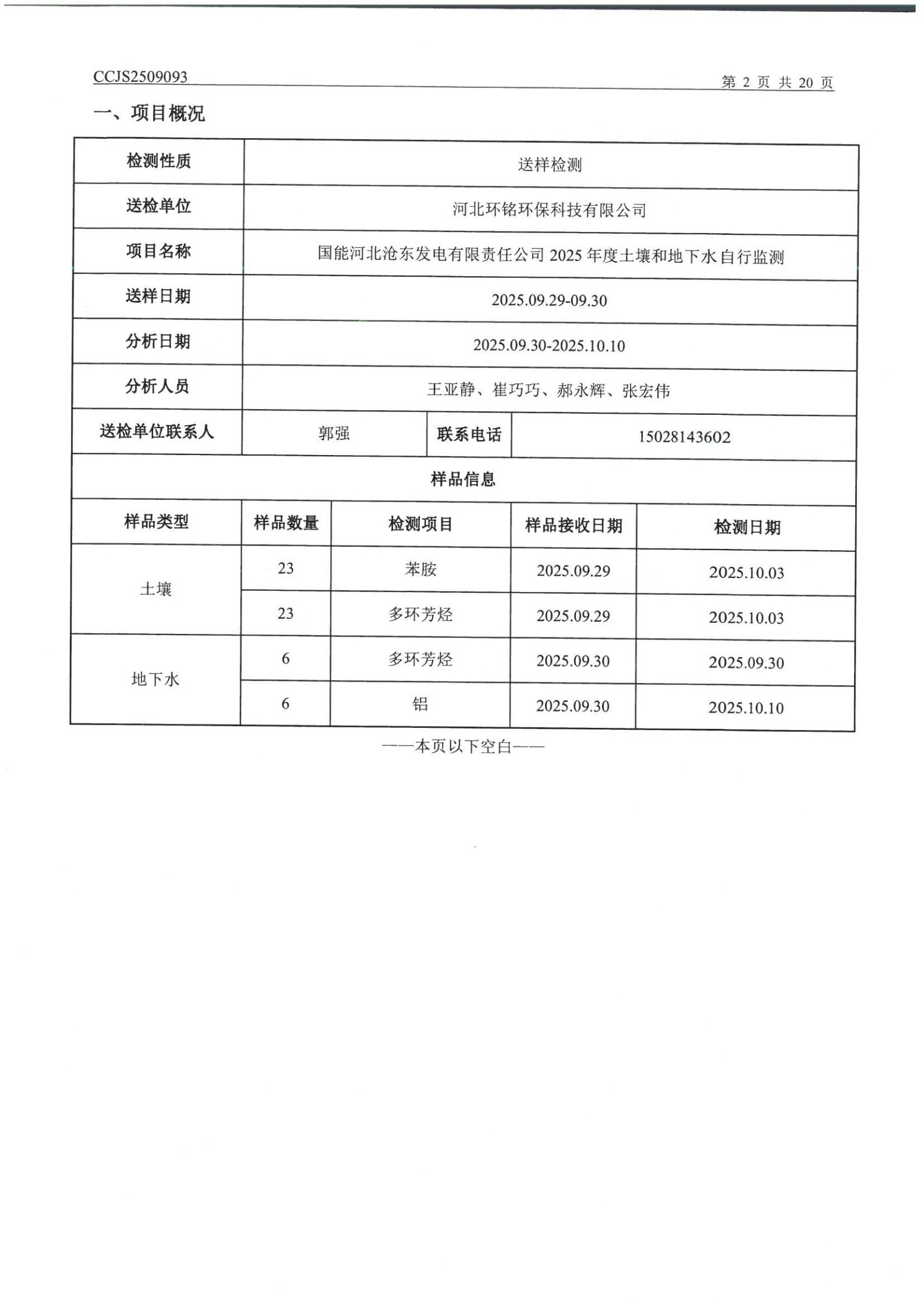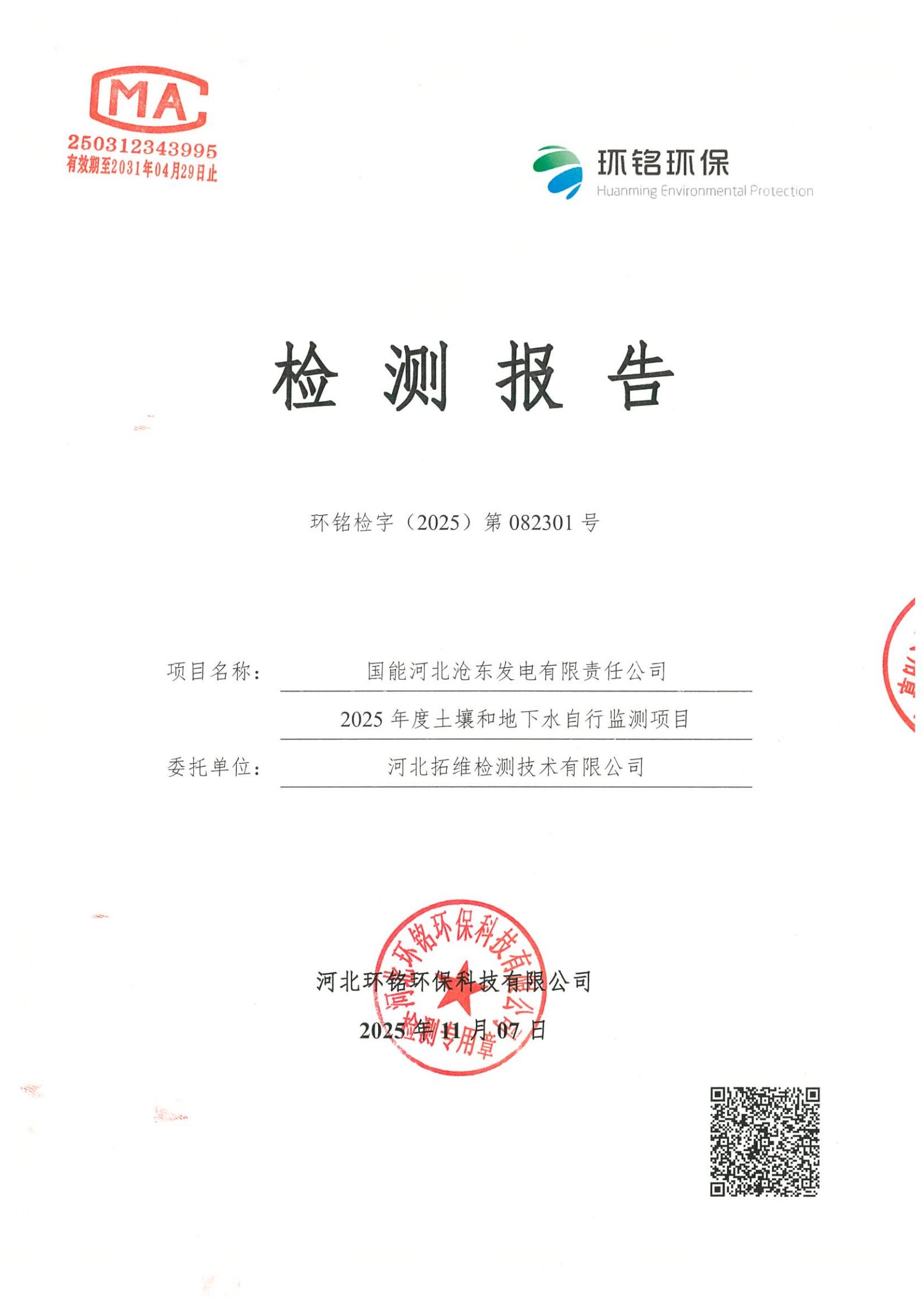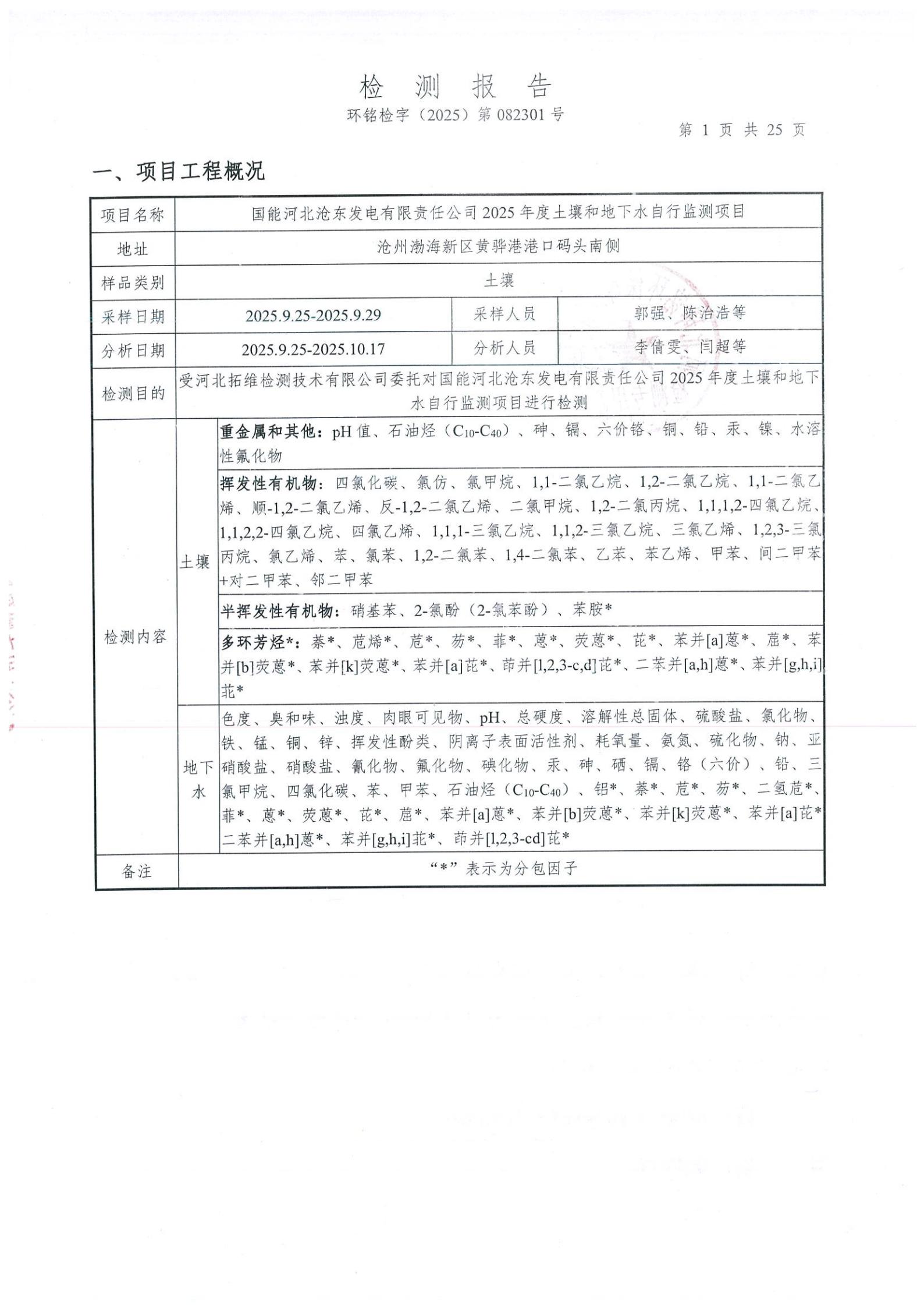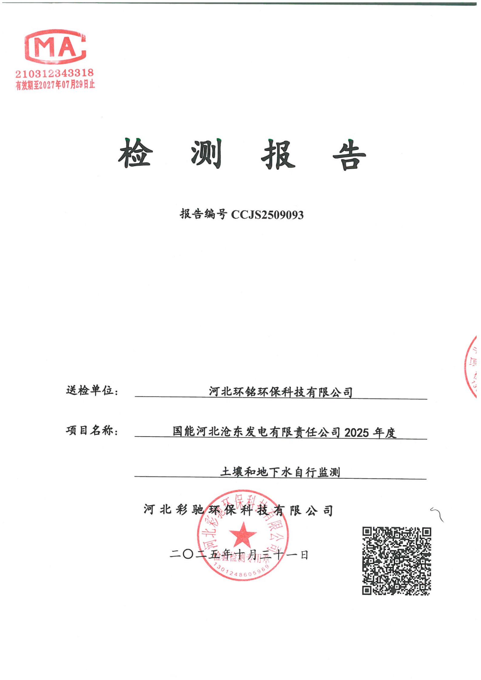 国能河北沧东发电有限责任公司2025年度土壤和地下水自行监测项目检测报告